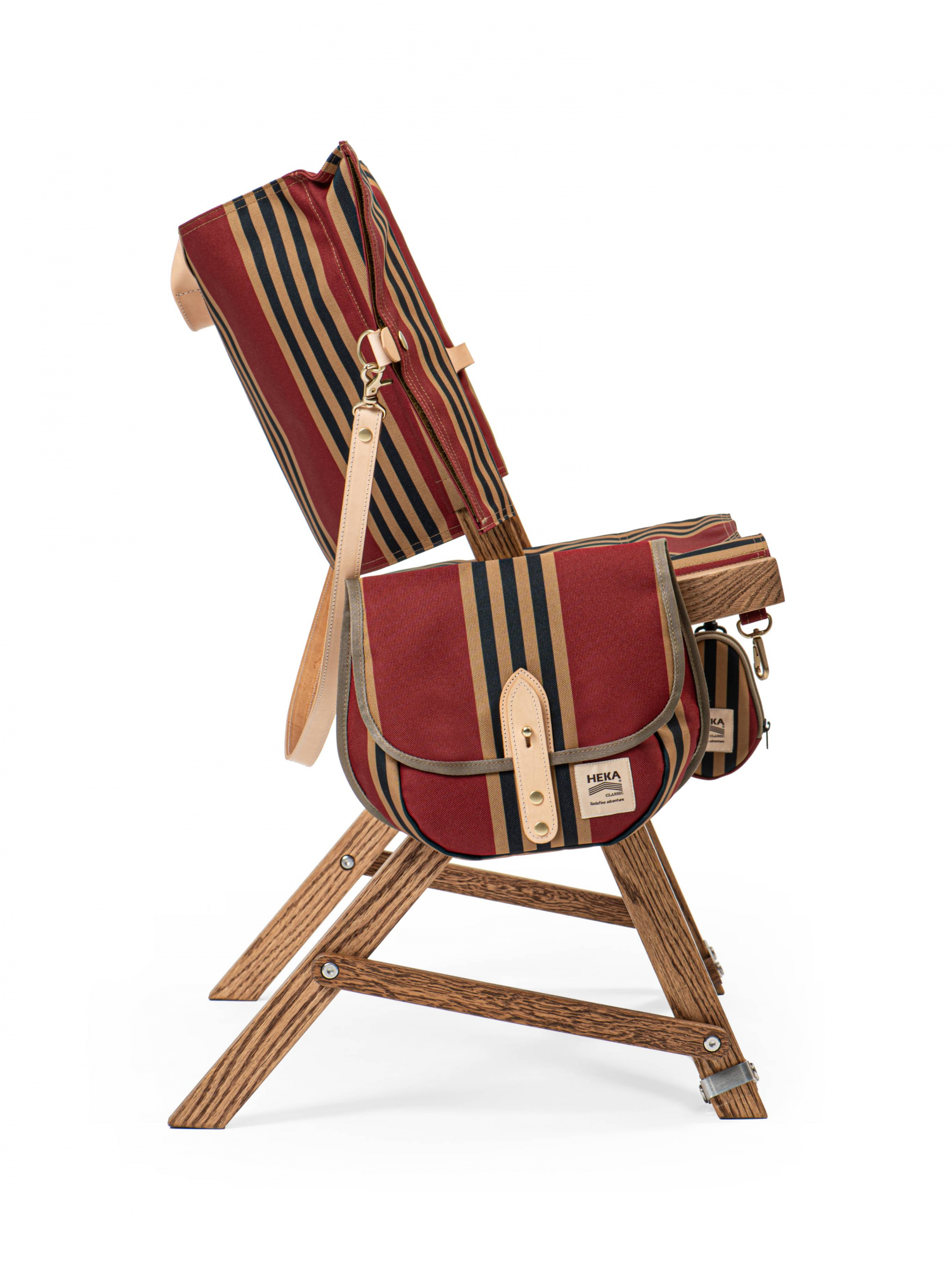 HEKA chair는 등받이가 수납가방이 되는 간편한 접이식 체어입니다.